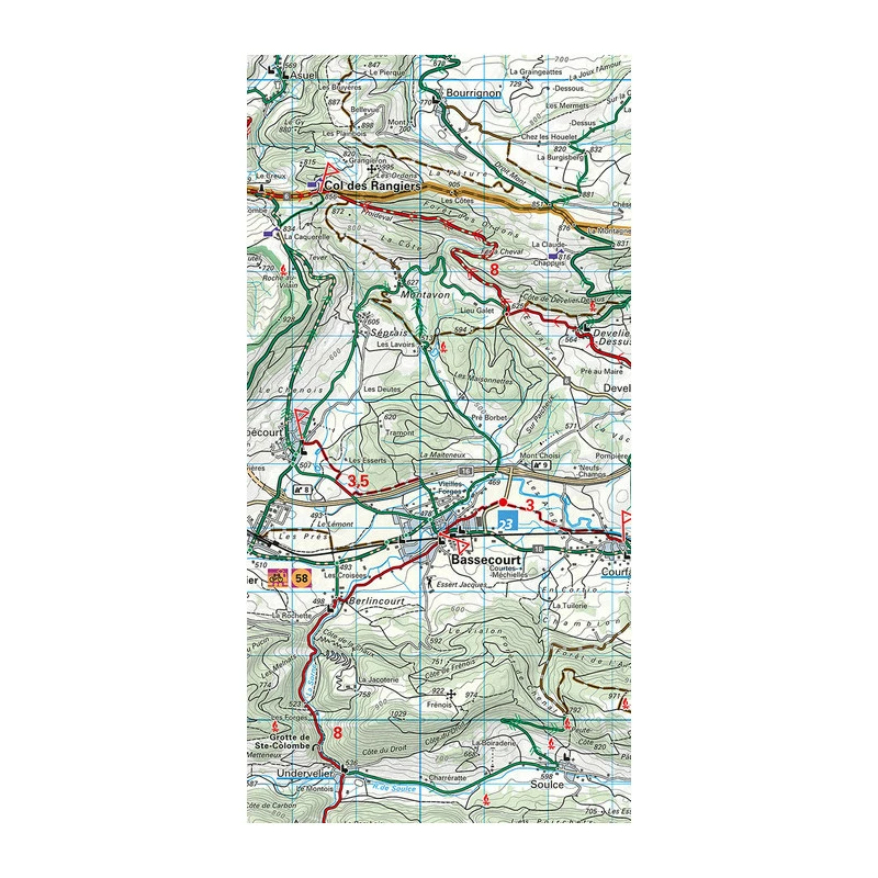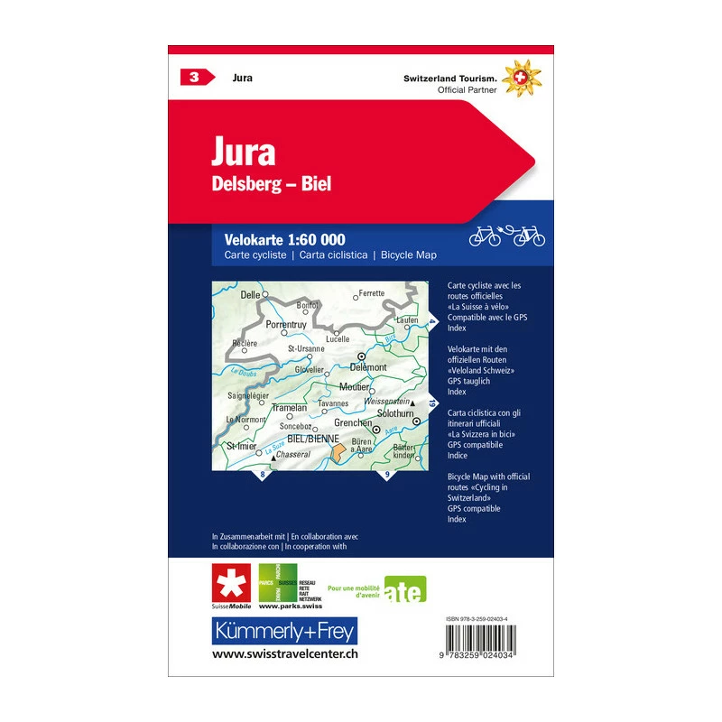 Très bonne carte détaillée au 1:60’000 avec itinéraires recommandés pour les vélos.