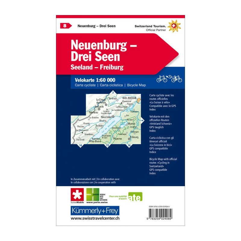Très bonne carte détaillée au 1:60’000 avec itinéraires recommandés pour les vélos.