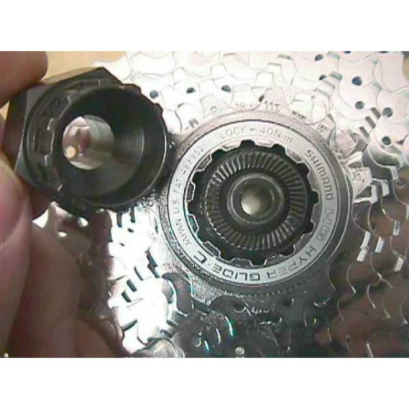 Outil Park Tool pour le démontage des cassettes (et freins à disque) Shimano, mais aussi Sram, Sunrace, Suntour, Chris King et autres cassettes à cannelures. Pointe de guidage inclue.