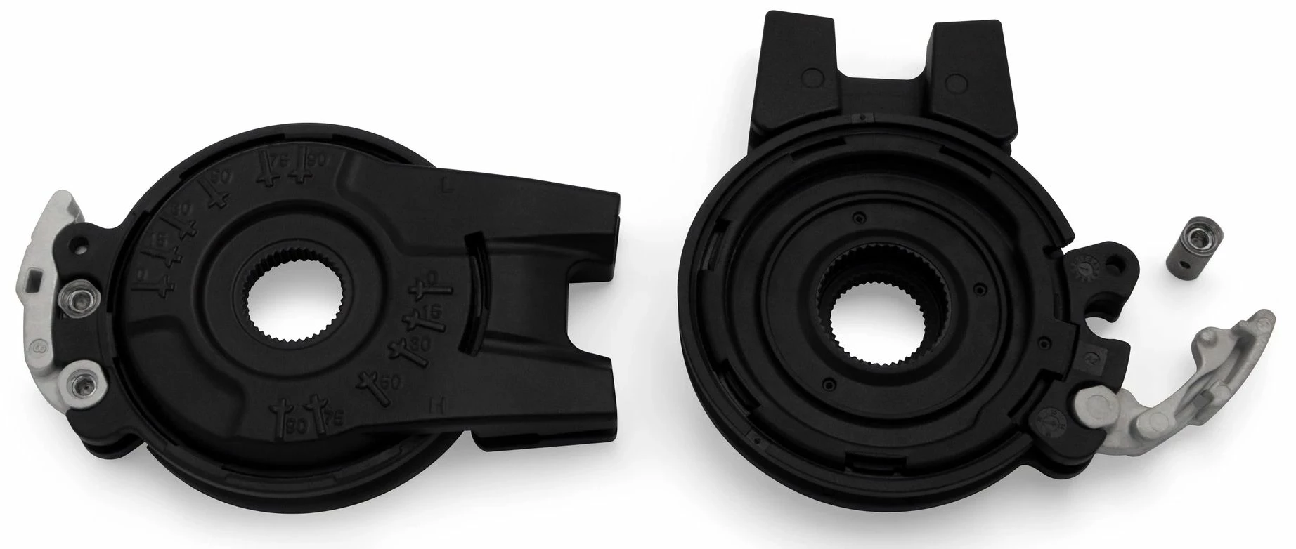 - L’option “One-Turn” n’est disponible que pour les moyeux avec fixation 40 dents et permet de changer de vitesses plus rapidement. Avec cette version, la poignée tournante ne doit être tournée que d’environ 112°. Cela a toutefois pour conséquence que l’étagement ne peut pas être réglé aussi finement et qu’il faut plus de force pour changer de vitesse.