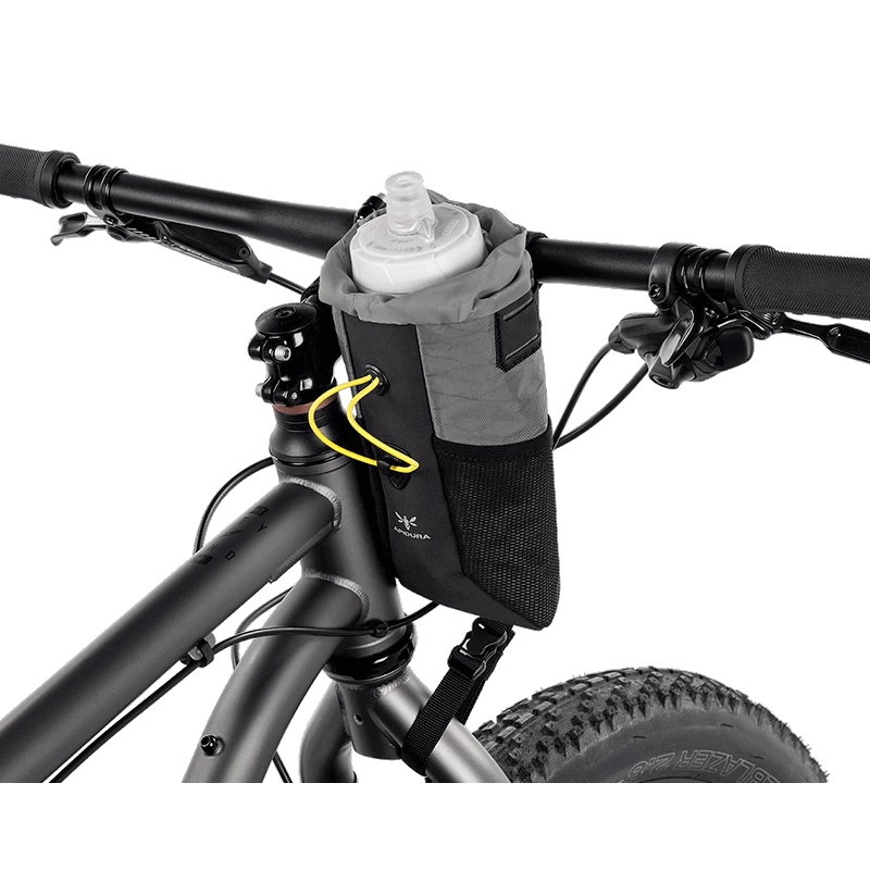 Version améliorée et plus volumineuse de la poche latérale à fixer entre la potence et le guidon, pour un accès direct aux petites choses que l’on souhaite garder à portée de main comme nourriture, bidon, lunettes, gants, etc…