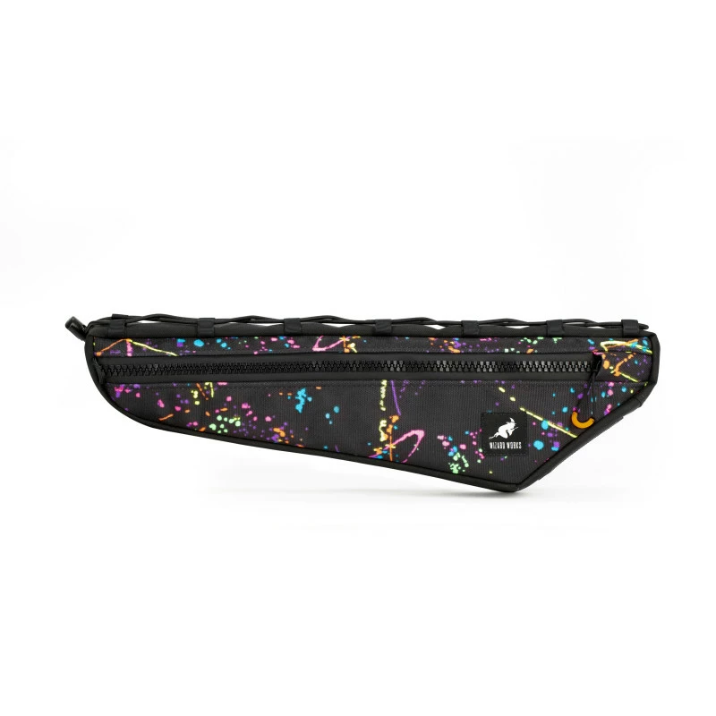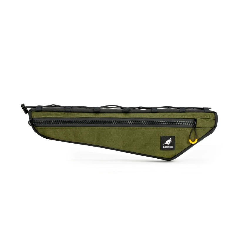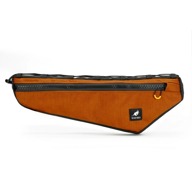 Sacoche de cadre de la marque anglaise Wizard Works. Se fixe Ă l’aide d’une ficelle et de straps sur le cadre pour un maintien franc. Une sacoche qui permet de mettre de la nourriture et de petits objets lourds. Fermeture robuste pour une ouverture efficace tout en roulant.Â