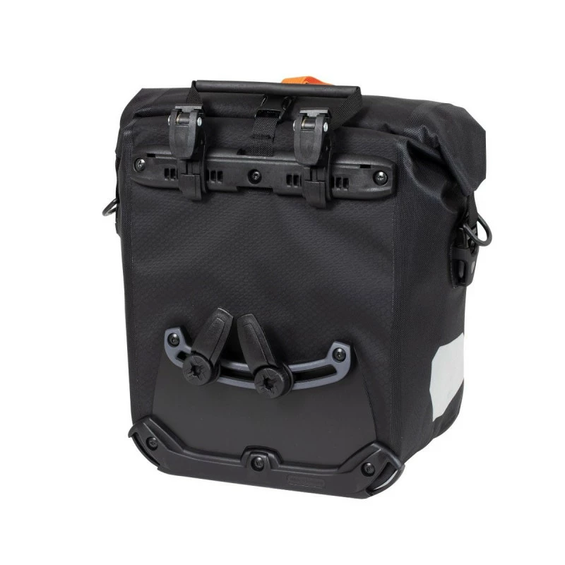 Sacoches avant étanches avec système de fermeture simple à enroulement avec accroche sur les côtés. Coutures soudées et toile souple de Cordura (sans PVC) doublée de caoutchouc PU pour une parfaite étanchéité. Nouveau système de fixation au vélo Quick-Lock2.1 réglable sans outils.