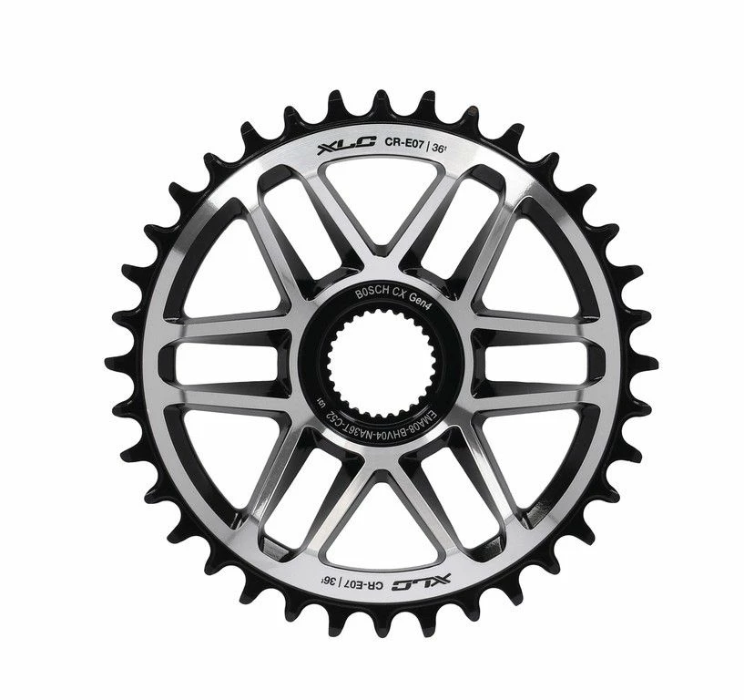 Plateau CR-E07 d’XLC pour VTT Ă©lectriques avec moteur Bosch Gen.4 et transmission 12 vitesses. Ce plateau en alliage d’aluminium haute qualitĂ©, usinĂ© CNC est un plateau Direct Mount avec une ligne de chaĂ®ne de 52 mm.